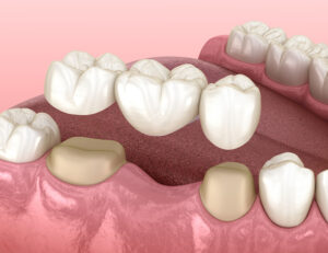 ブリッジは、失った歯の両隣を削って土台にし、その上に人工の歯