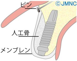 その上を**メンブレン(特殊な膜)**で覆って、骨の再生を促
